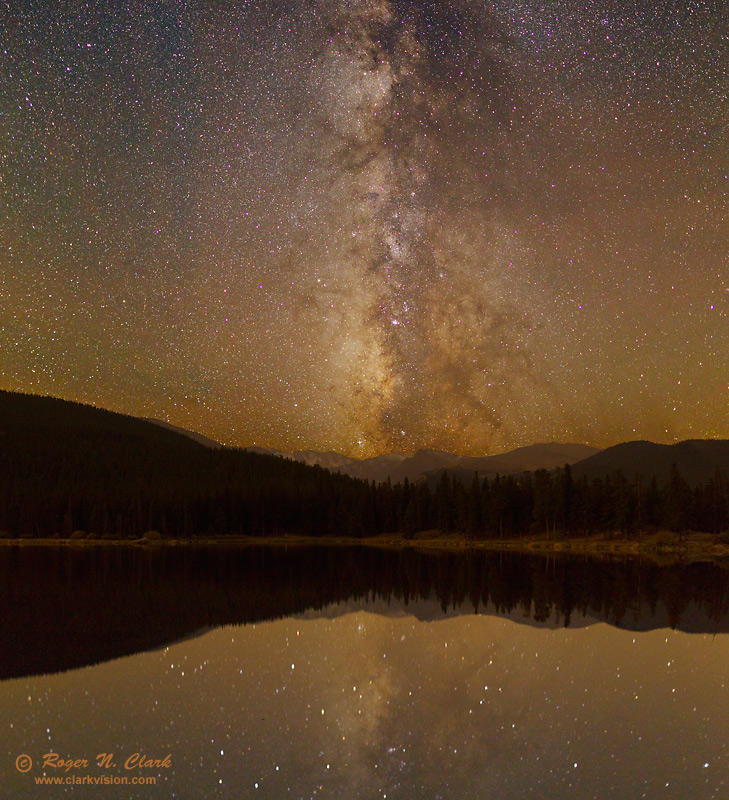 When doing long exposures, if one is concerned about shadow detail and color, one should make dark frames and subtract them. Performance could be substantially better in a hotter night when dark current noise is higher. For temperatures lower than typical room temperatures and exposures of 30 seconds or less, dark frame subtraction with modern cameras is usually not needed. One can even take darks on a different night, as long as they are near the same temperature. The images in Figure 1, 7, and 8 did not have any dark frames subtracted. Digital cameras older than about circa 2008 had issues with dark levels and required dark frame subtraction.