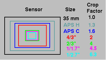 Digital cameras have a large range of sensor sizes (e.g. Figure 1). Crop Factor refers to the size of the sensor in a digital camera relative to the size of the frame in a 35 mm camera. A 35 mm frame size is 24 x 36 millimeters (mm).