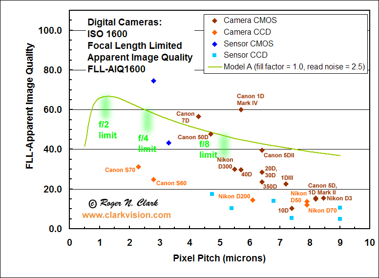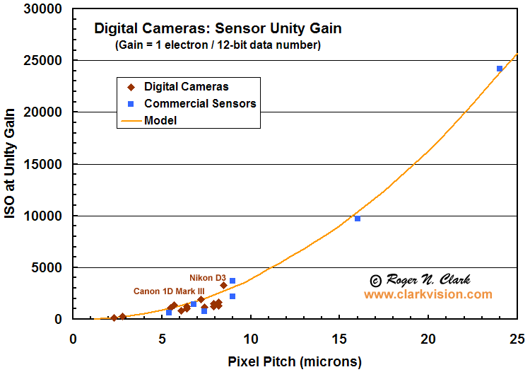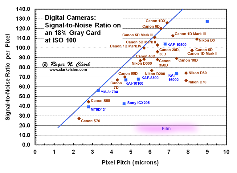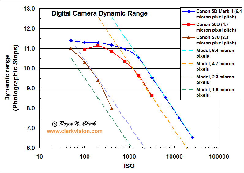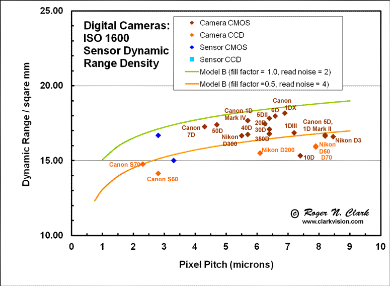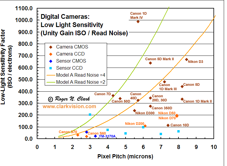 Data on this page are from the references below and from the Digital Camera Sensor Analysis pages on this site: http://clarkvision.com/reviews/