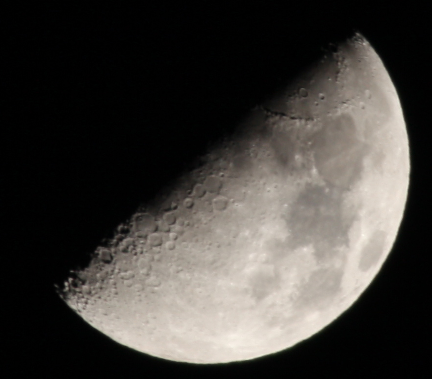 A 500 mm lens on a camera like the Canon 5D Mark II with 6.4 micron pixel spacing should have a lunar diameter of 720 pixels. That value is very close to the diameter of the Moon in Figure 4.