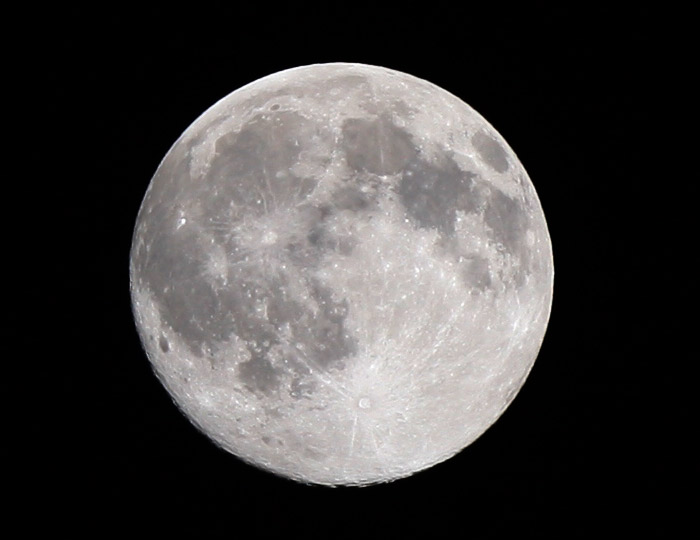 This page shows results from photographing the Moon with different focal lengths on the same camera. The goal is to show the Moon and the image detail achievable with different lenses. The images on this page were all taken on the same night, November 1, 2009, with a Canon 5D Mark II 21 megapixel digital camera and various high quality lenses. Try imaging the full Moon with your lenses and camera and see if you can match or better these images. These are not intended to be the ultimate that can be achieved. The images are all out of camera jpegs with no sharpening. The only processing applied was a single curves adjustment to improve contrast. The curves adjustment was done in photoshop with input =155 set point on output = 90.