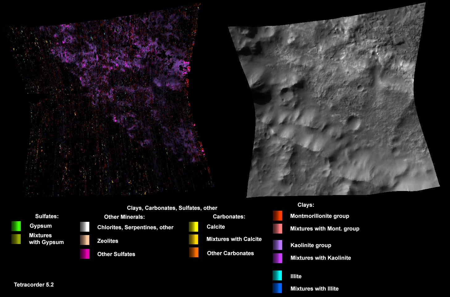 Figure 1. Tetracorder map of clays, carbonates sulfates and other minerals
