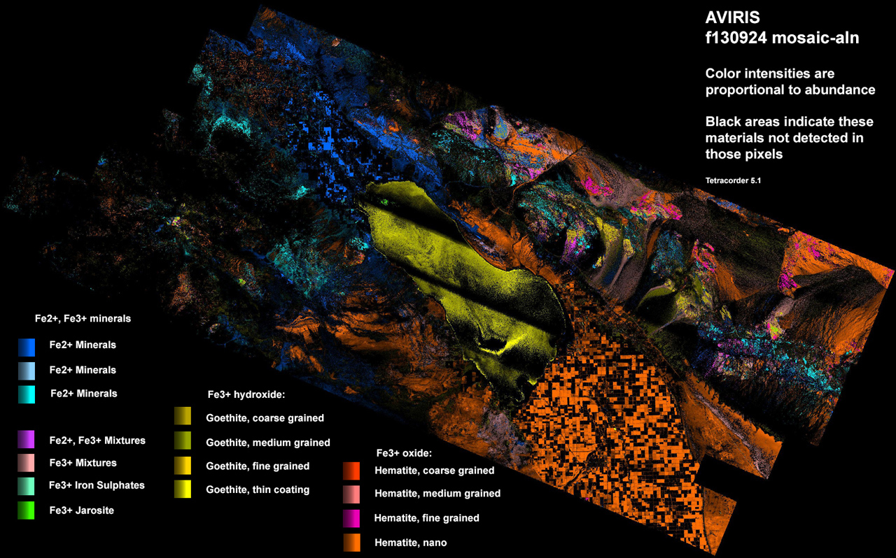 Figure 2. Tetracorder map of iron-bearing minerals using absorption