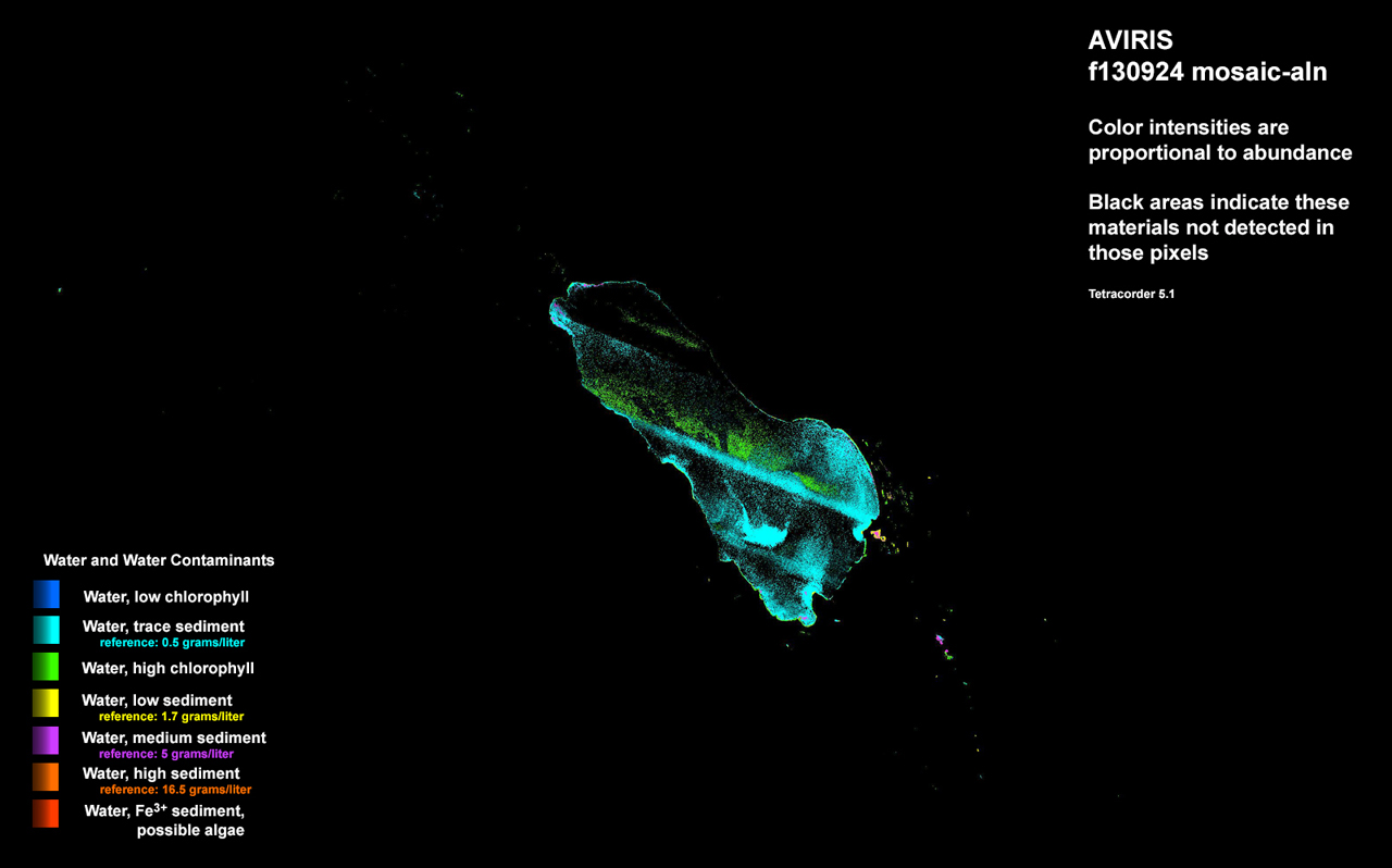 Figure 5. Tetracorder map of chlorophyll content in the lake. Note,