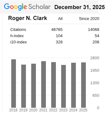 All views and discussions on this website are those of Roger N. Clark and other members of the ClarkVision.com family and these writings do not necessarily reflect the views of their employers, nor is any such endorsement implied.